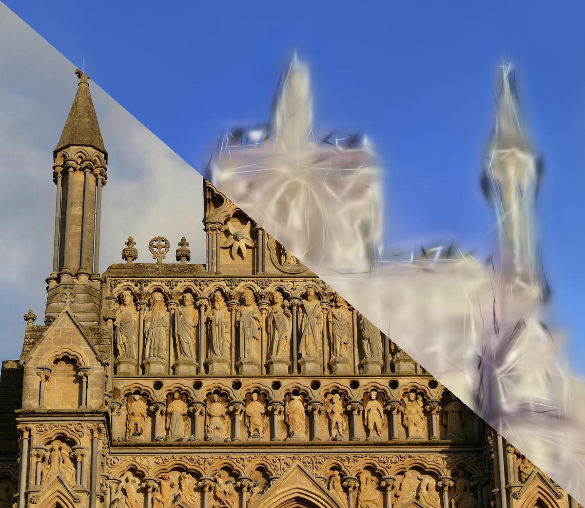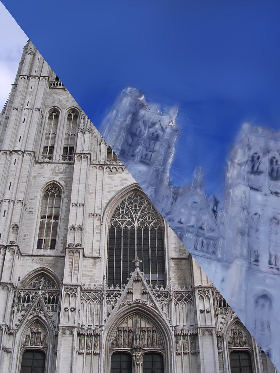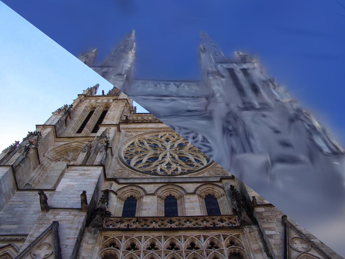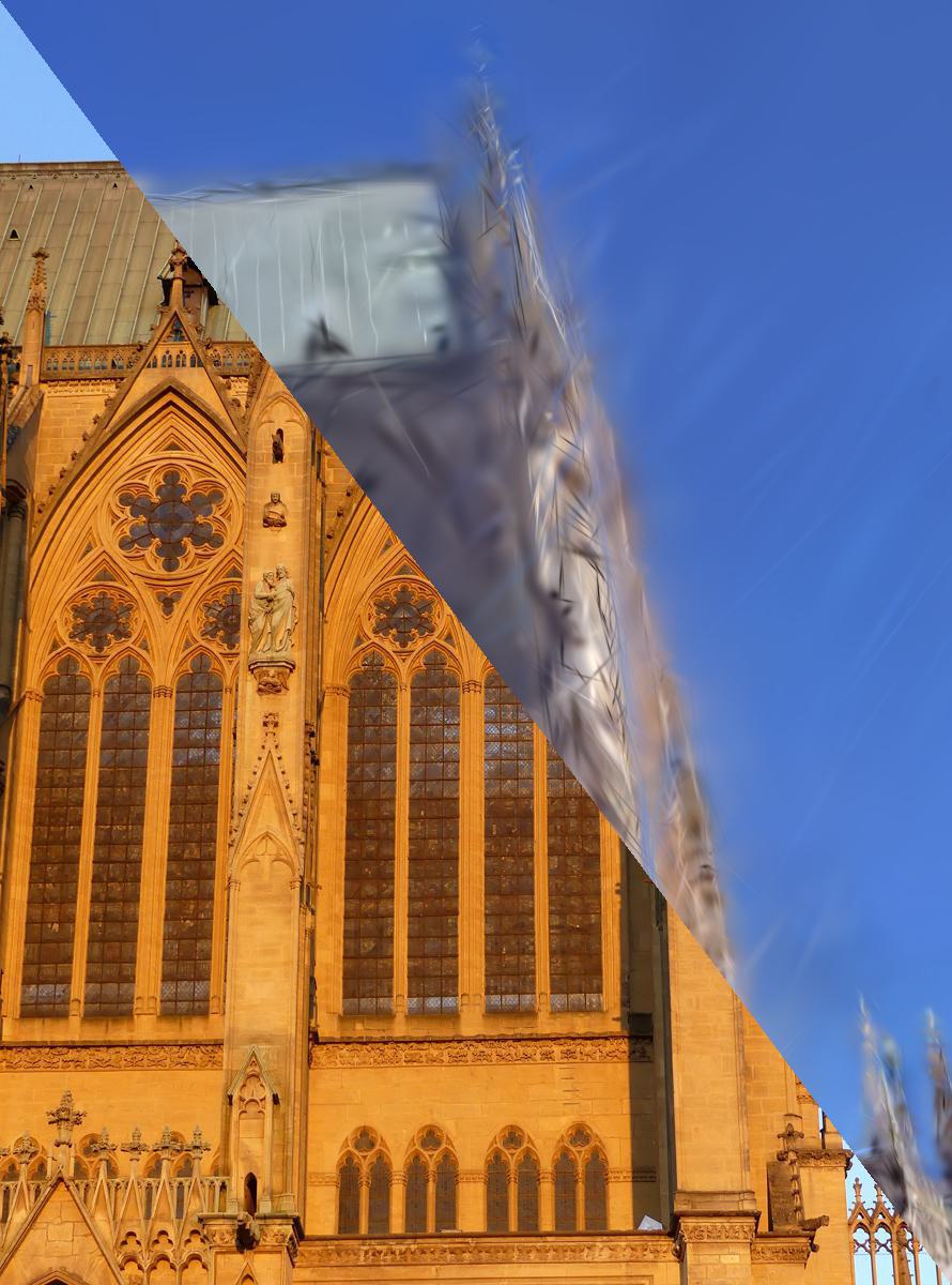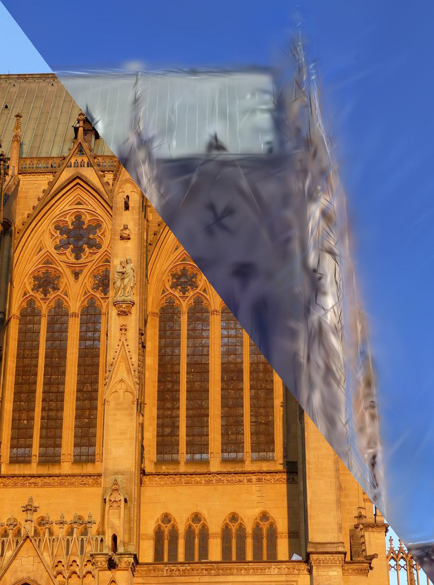 Given a partial 3D reconstruction produced by running structure from motion on Internet images capturing large-scale landmarks, such as the front or the rear façade of the Milan Cathedral depicted above, we present a technique for grounding this reconstruction in a complete 3D reference model of the scene. Reference models are constructed from pseudo-synthetic renderings extracted from Google Earth Studio. As illustrated above, our approach allows for merging partial, disjoint 3D reconstructions into a unified model.