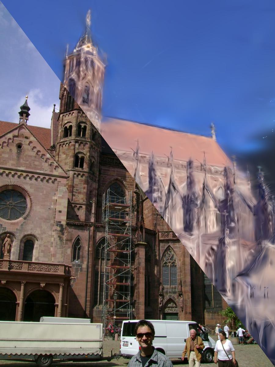 Below, we show the alignment produced by our optimization based method, aligning a partial reconstruction of the Freiburg Cathedral to a 3DGS reference model generated from Google Earth Studio. Four images from the partial reconstruction are provided, shown in the top half, whereas the bottom half shows the corresponding rendering from the Gaussian Splatting model. As illustrated below, our inverse optimization-based approach predicts precise transformations, even in the presence of inaccurate initializations.